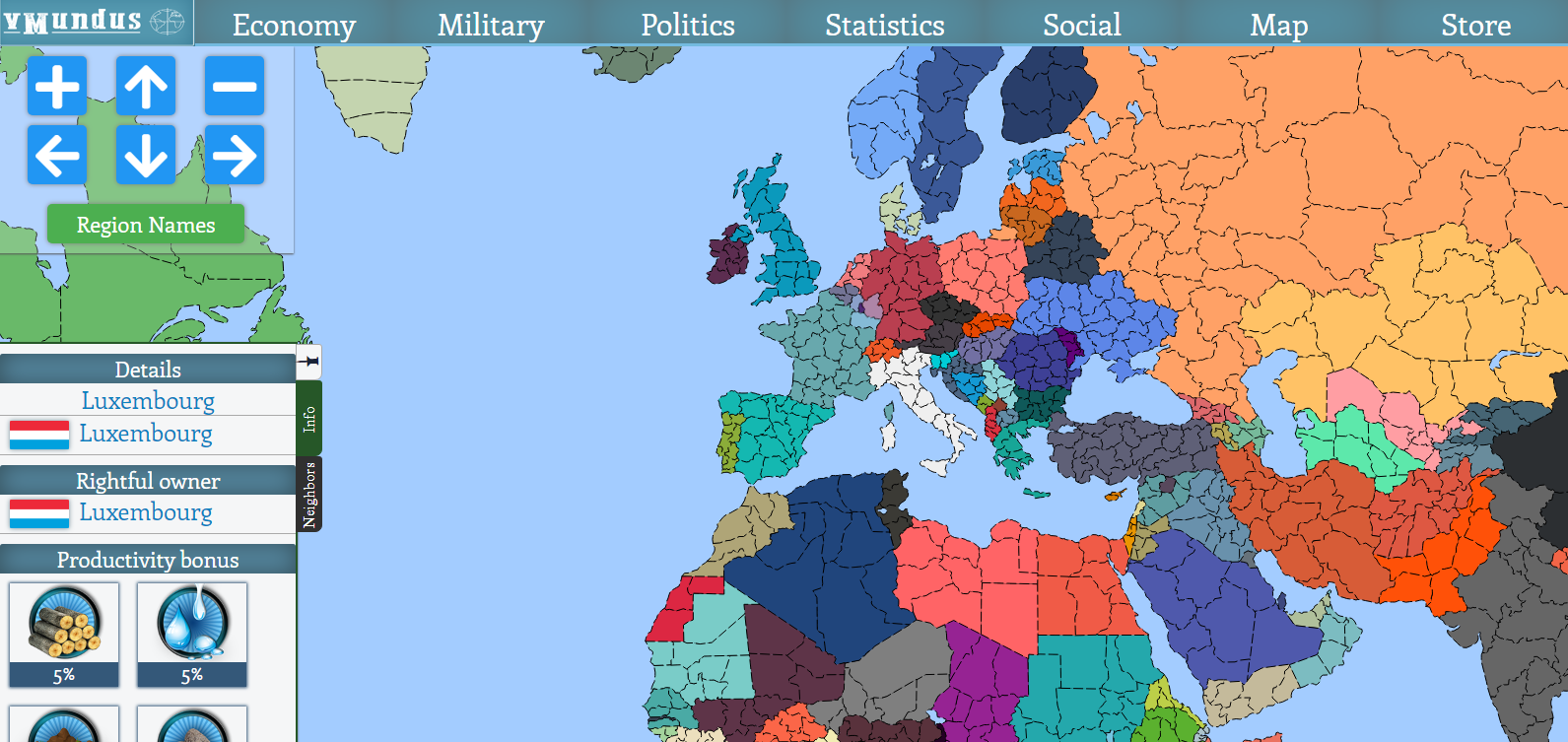 vMundus - is a free browser-based multiplayer strategy game. The game is based on real-life economy and politics. To build new companies, country infrastructure, research new technologies or conquer other countries, first you will need to extract resources and produce useful products from them. The more resources your country controls, the more powerful it is. In this game you are the boss of your own people, you can train them and send to war or work on your own or other players factories, organize resistance wars in other countries or reveal your own country from invaders. You can organize or join unions, create your own economic system and much more.
