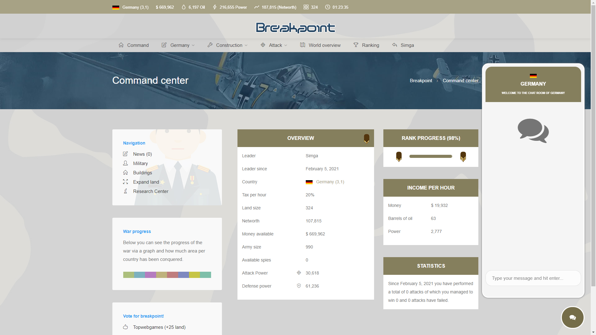 Breakpoint is a free to play online strategy game set in World War II. Expand your empire and become the most powerful leader in the world.